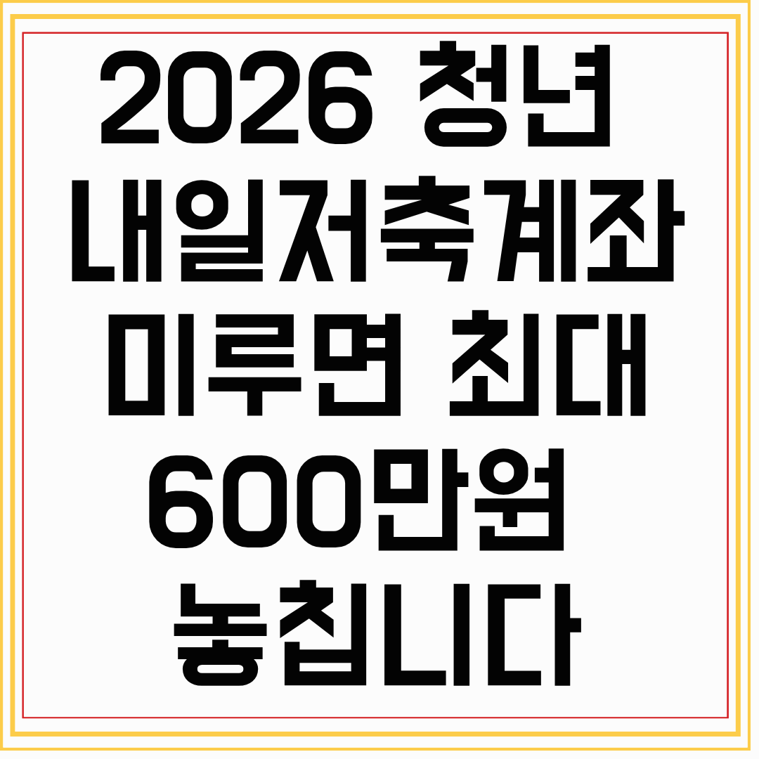 2026 청년 내일저축계좌, 미루면 최대 600만원 놓칩니다